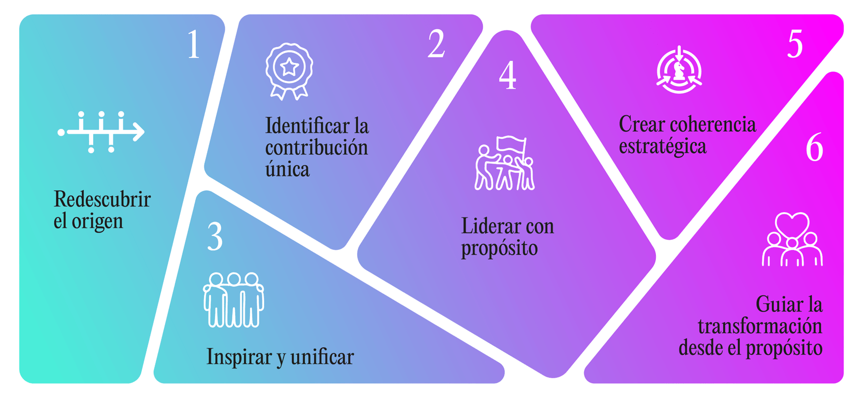 Estos seis pasos proponen una ruta para convertir el propósito en una fuerza viva que inspire a las personas, guíe las decisiones y transforme la estrategia en acción coherente.